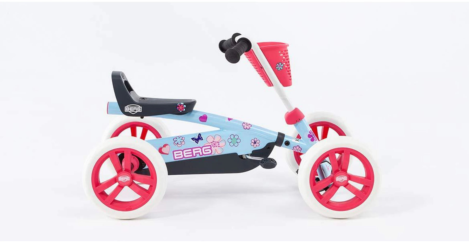 New for 2020 the stylish BERG Buzzy Bloom 2-in-1 Go-Kart can be used in freewheel ‘push’ mode, for when your little one is tired and needs a helping hand, and also like a normal Buzzy allowing your child to ride around independently.