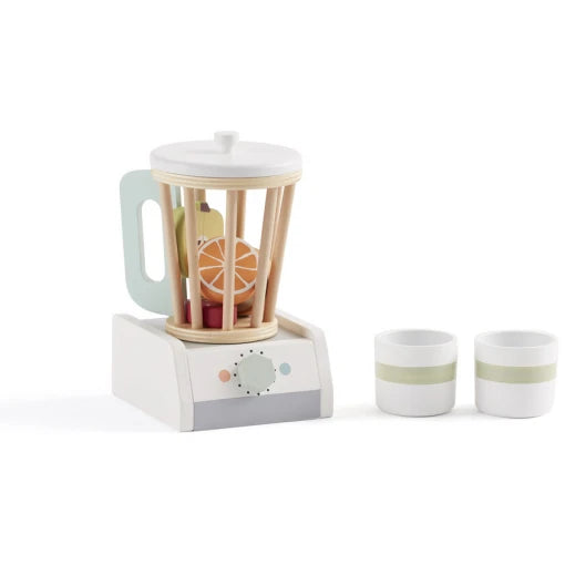 Whip up a smoothie in our toy blender. Blend all the fruit together, mix, and serve to Mr. Teddy and all his friends. If you have wooden vegetables at home, blend them together into a tasty veggiepower smoothie!