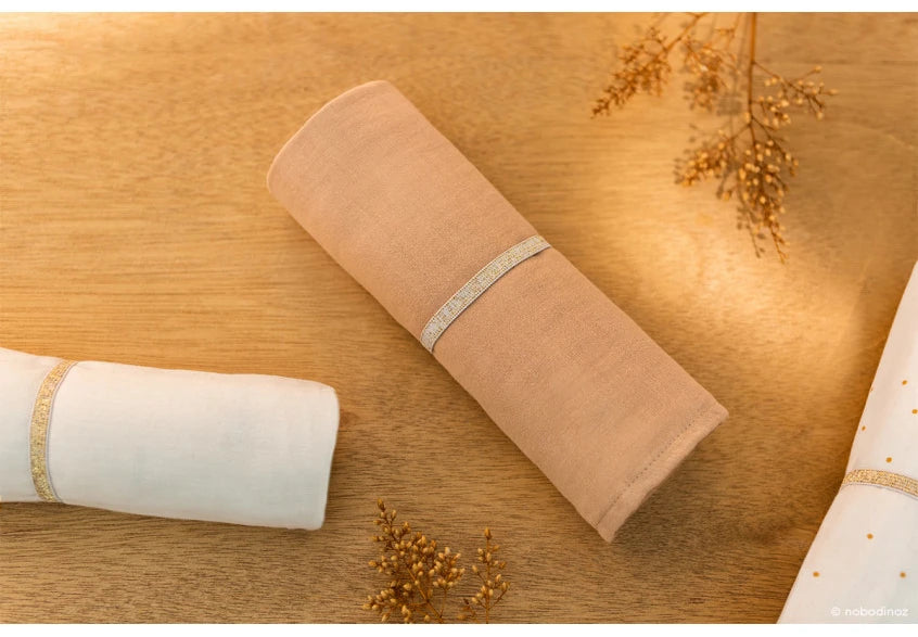 A must have in every mum’s bag! An extra soft organic cotton swaddle with a large size, ideal to swaddle baby inside. You can also use it as an improvised bib, a breastfeeding cover or even as a stroller blanket to protect your baby from the wind and the sun…