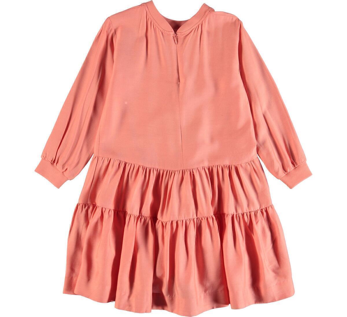 Feminine dress with long sleeves and a beautiful draped skirt. The dress has a zip closure at the neck.
