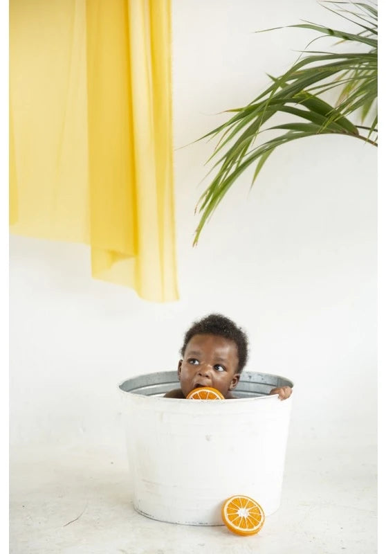 Clementino the Orange is a chewable baby toy for teething, bath time and sensory play. Handmade in 100% natural rubber and hand painted with natural pigments.