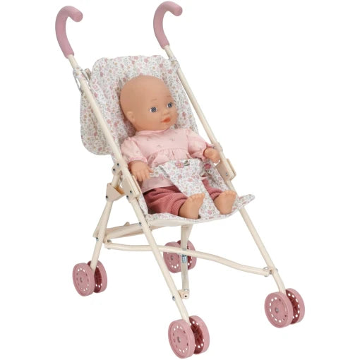 The seat is decorated with a lovely floral pattern and the matching bag on the handles provides storage space for the doll’s accessories and walking essentials. The strap will keep the doll comfortably seated during walks.