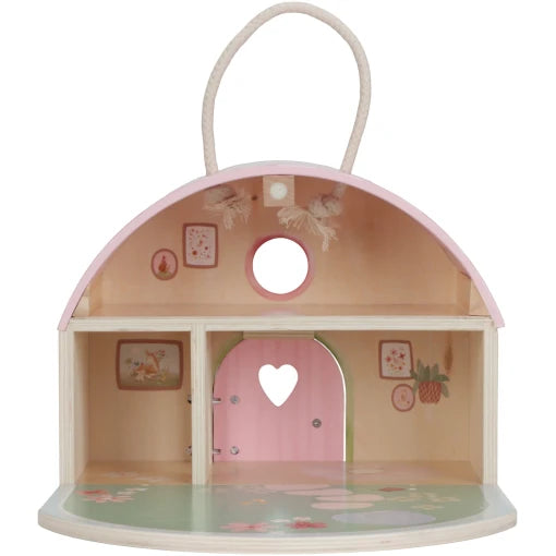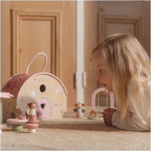 Discover the fairy house toy for little ones! This beautiful playhouse is made of wood and decorated with colourful flowers. This cottage is a perfect setting for endless playtime fun, supplied with cute fairy figures and a parasol under which the fairies can relax and enjoy their picnics. The fairy figurines bring the cottage to life and invite children into creative storytelling and play sessions. After a day of imaginative adventures, the cottage can be easily folded shut so that it can be neatly stored away until the next adventure. This fairy house toy stimulates children’s imagination and creativity, allowing them to enjoy their special play world again and again. Translated with DeepL.com (free version)