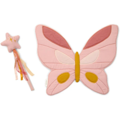 With these fairy wings and magic wand from the Fairy Garden collection, your child will experience plenty of fun. The wings are easy to wear thanks to the elastic shoulder straps. The fairy look is complete with the dreamy magic wand with ribbons. Perfect for playful moments and dress up parties.