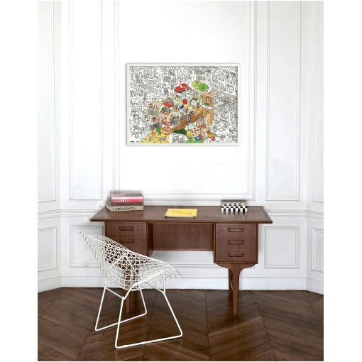 Relax by colouring this huge poster and enjoy good times with the child! Choose the colours that best match your walls and space. Ideal for many happy and creative hours between young and old. Contains a 70 x 100 cm poster, printed on recycled paper.