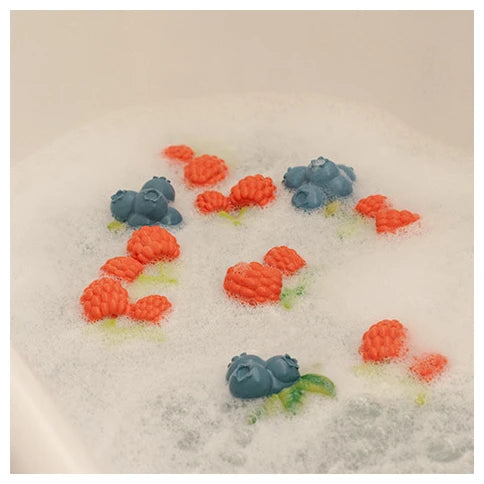 Jerry the Blueberry is a chewable baby toy for teething, bath time and sensory play. Little ones love its round & squishy shape to grasp and soothe teething gums. Its design with a hole in the middle makes it perfect to hang from a strap & take it everywhere you go!