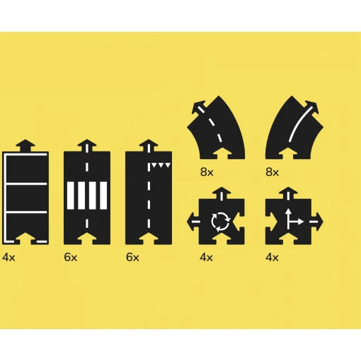 If you want to be King of the Road, this is your set! It contains no less than 40 parts for maximum fun for everyone. This set is big and is highly recommended for kids that really love to play with cars but also for use at schools and daycare centers.