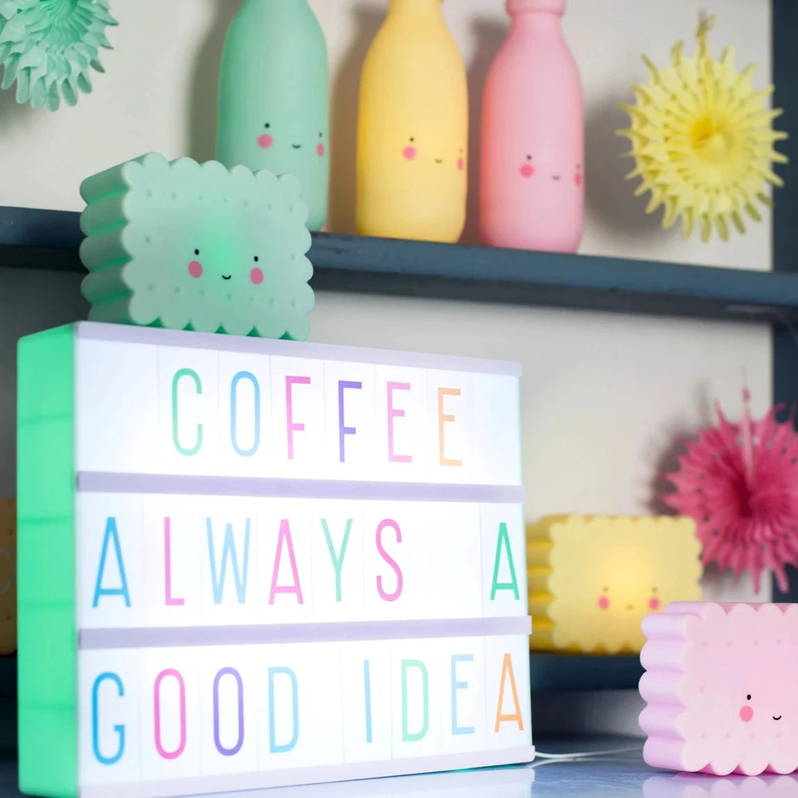 Change your messages as often as you like by simply sliding the plastic letters on and off the box. Mix and match all the enclosed letters and symbols (85 pieces!) as often as you want. Or make your lightbox extra unique with our extra letter sets.