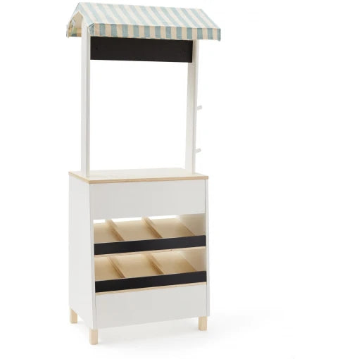 Set up your own ice cream market, food market or coffee shop with this versatile market stand. Two shelves outside and chalkboard at front. One shelf inside. Another chalkboard on top. Two hangers at the side for shopping bags etc. Suits well with our Bistro concept.