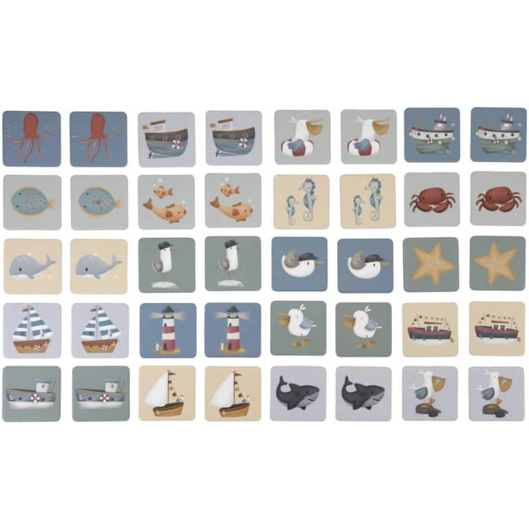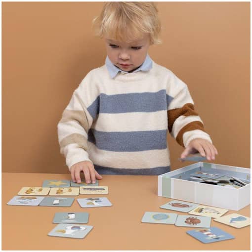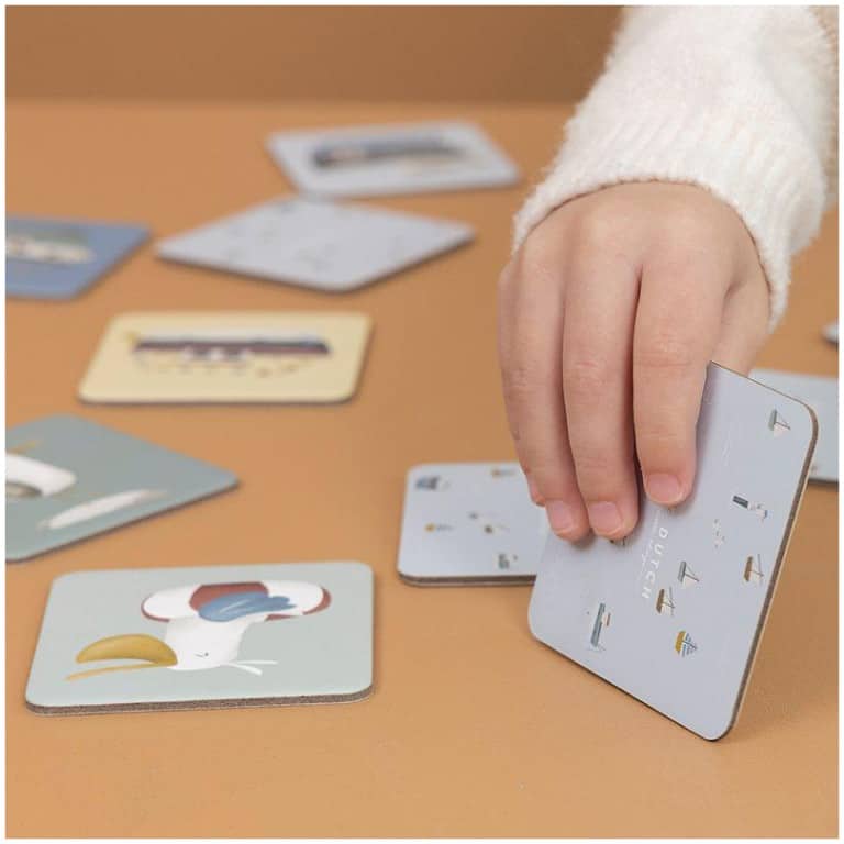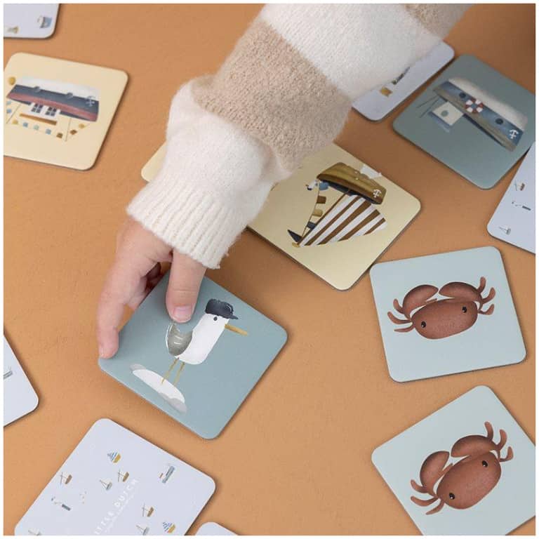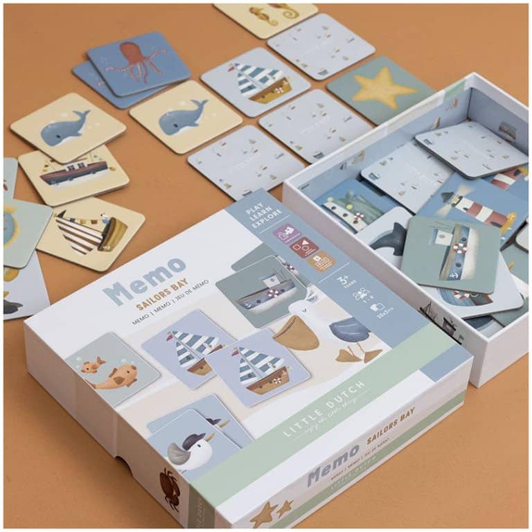 Find the lighthouse, search for the starfish. This Little Dutch memo game is as fun as it is educational. Each card is beautifully decorated with a harbour-inspired illustration. Shuffle the cards and lay them face down on a surface. Collect the most matching pairs to win! If you like, you can play this game solo too. Memo ‘Sailors Bay’ makes for hours of enjoyment and teaches kids to take turns. The card game also trains important skills such as concentration and focus.