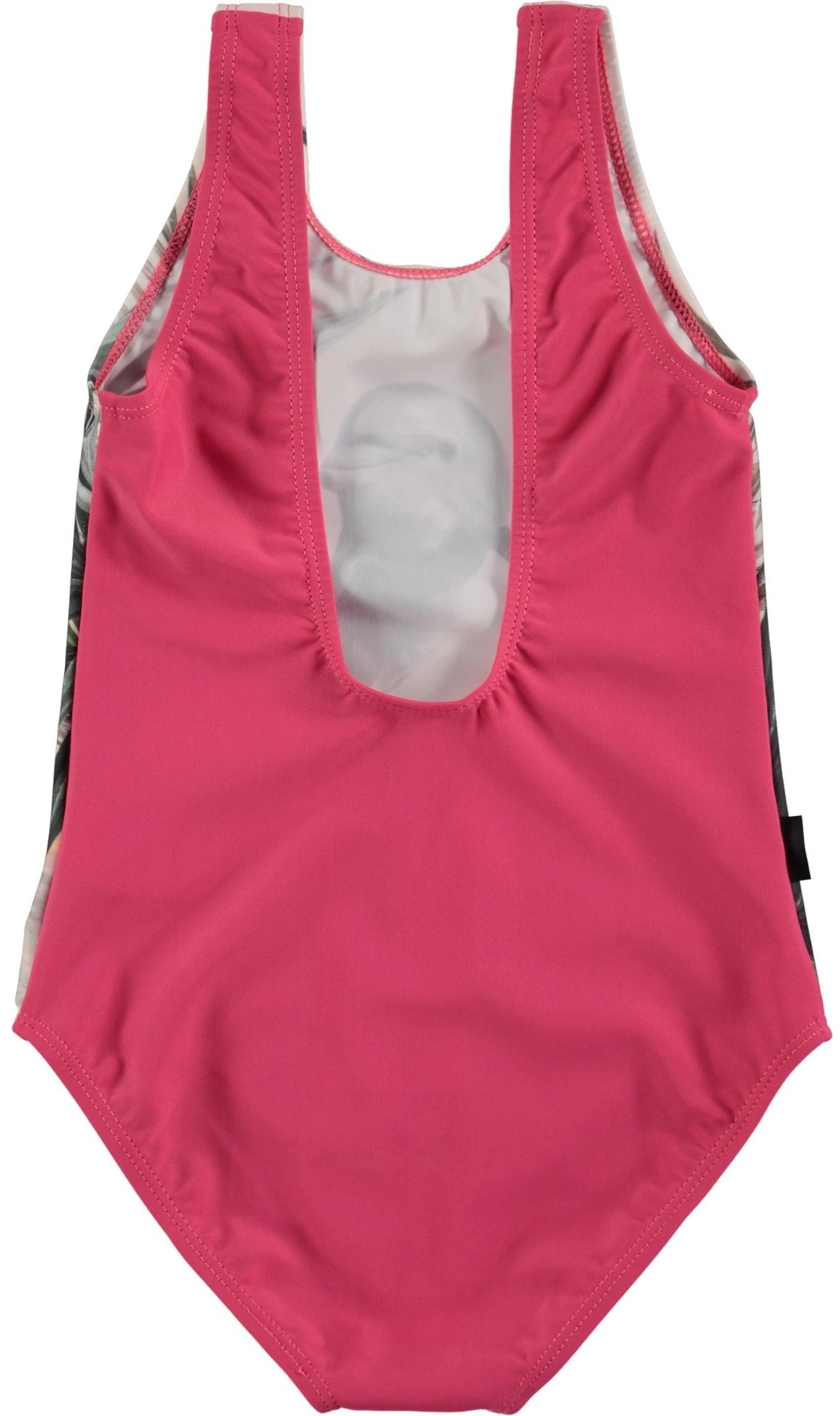 Swimsuit with digitalt dolphin print and wide straps. The elastic fabric allows for easy movement. This product has a UV protection of 50+ and has been tested before, during and after use.
