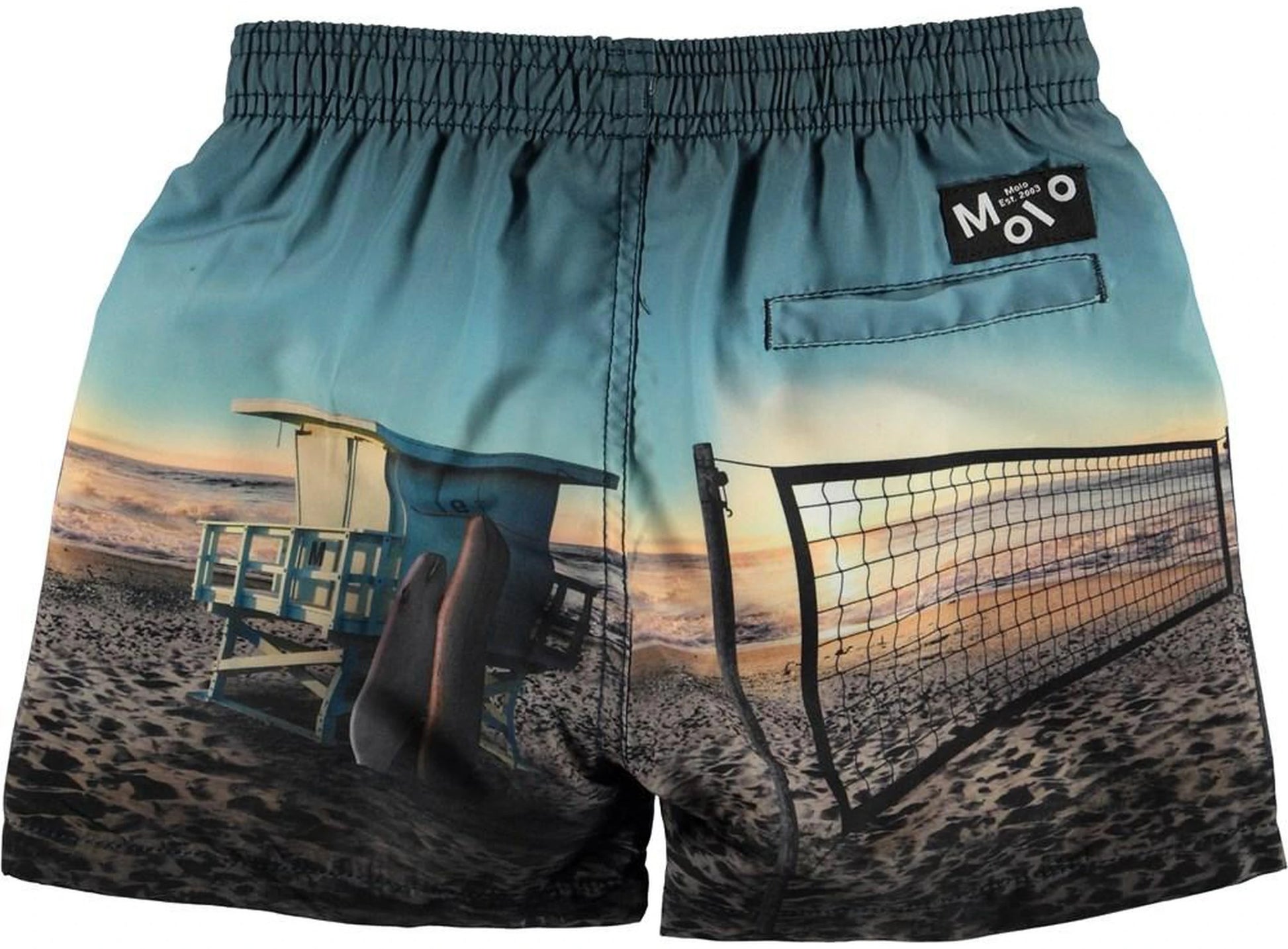 Niko is a pair of swim trunks with a tie at the waist and the ‘On The Beach’ print. They are comfortable and easy to move around in. Molo’s swimwear has a 50+ UV protection. Mix and match with the season’s rash guards for extra protection.