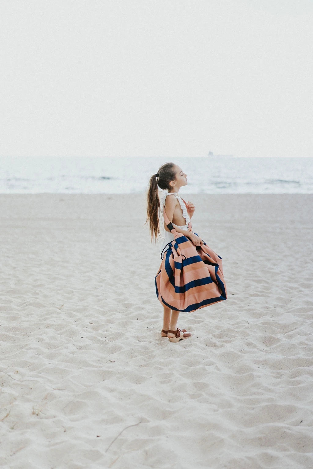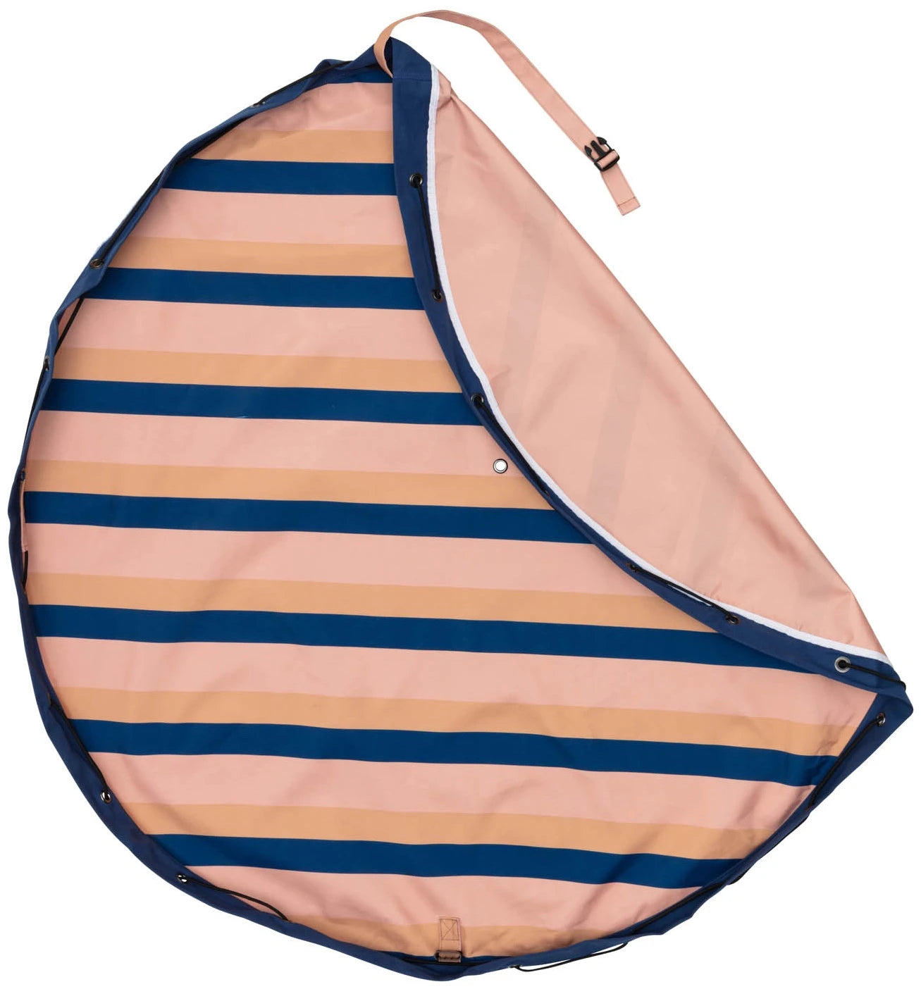 Kids love to spend time outside and this play mat is designed for outdoor use. The pattern is a classic tricolored stripe with peach, tan, and navy blue making it perfect for any style room while hanging inside. This waterproof toybag is ideal for storing outdoor equipment like sand toys and balls and the material makes it perfect for keeping kids dry and comfortable even on the grass. Definitely the most stylish outdoor play mat for outside! Time to go? Simply pull on the rope and everything is gathered neatly into it. The adjustable shoulder strap makes it easier to carry and the bag is also provided with a sand/dirt escape hole so no extra kg’s to carry.
