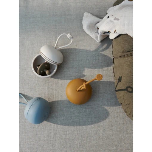Keep track of those indispensable comforters you won’t be caught without. The Philip Pacifier Box keeps the baby’s pacifiers clean, ready to use and easy to find. Attaches to strollers, diaper bags, and more.
