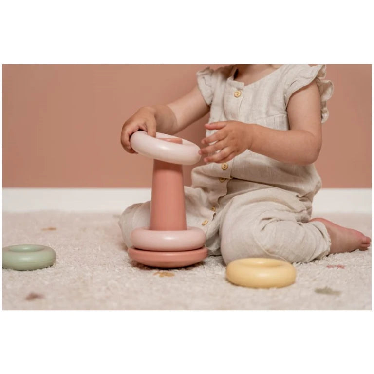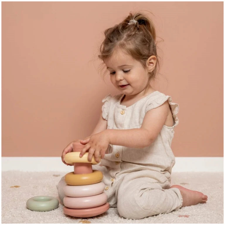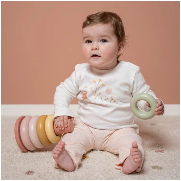 Stack the differently coloured plastic rings one by one. Make sure to concentrate, because the pyramid rocks from side to side! These playful stacking rings will stimulate your child’s hand-eye coordination. Will you manage to stack the rings in the right order? Take on this challenge!