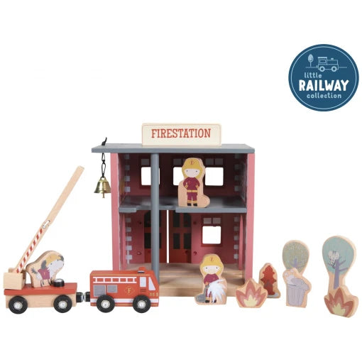 Is there a fire anywhere? Quickly open the doors and let the fire engine through. Oh no! It’s a kitty stuck in a tree! Luckily, the fire fighters come to the rescue. This wooden fire station is one of the many extension sets that can be connected to the Little Dutch railway train XXL set. Each of the wooden figurines and elements has detailed illustrations on both sides. Additional playsets, such as a vehicles set, a zoo and a garage, are available for even more hours of fun play.