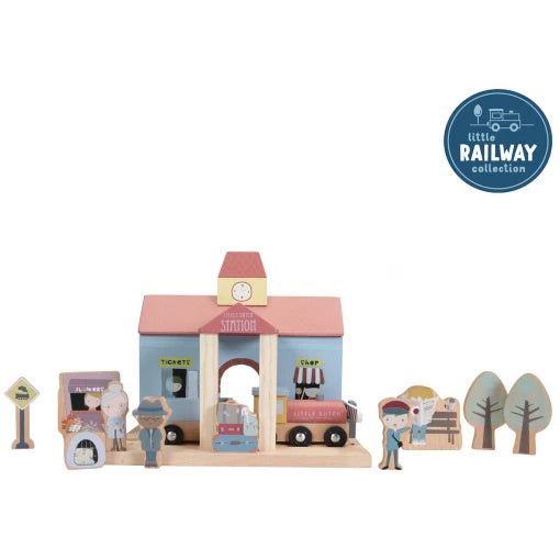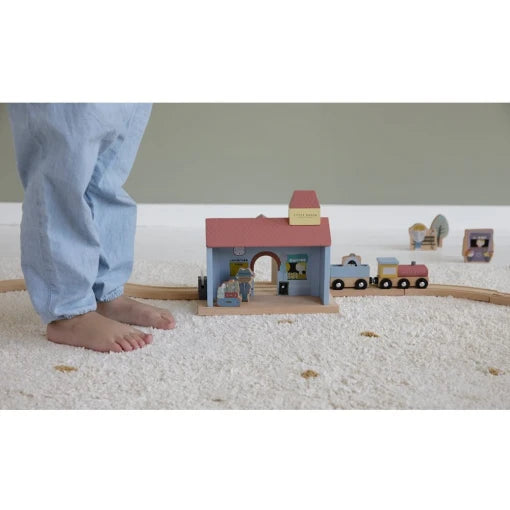 Let’s go on an adventurous train trip! Pack your bags, bring your pet and hop on the next train. This wooden train station is one of the many playsets that can be connected to the Little Dutch railway train XXL set. The wooden figurines have detailed illustrations on both sides and can be placed on the train wagon for a nice ride. Complete the train station with the railway train XXL set and additional extension sets for hours of fun play.