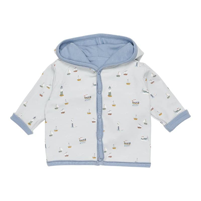 Keep your little one warm and comfy with our reversible baby jacket. This double-sided style staple can be worn flipped for two looks in one. One side is rendered in a blue hue, while the other side features a playful sailboat pattern. It’s made from certified organic cotton that is soft against baby’s skin. Available in two colours.