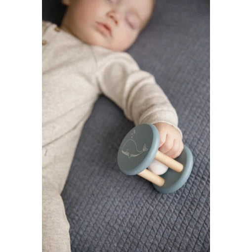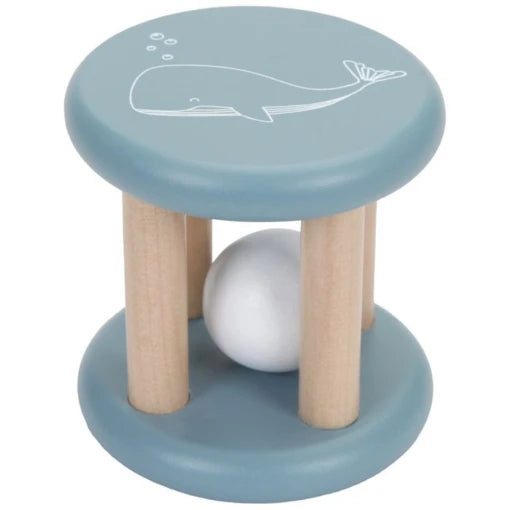 This cute wooden rattle rolls and rolls, making a ringing sound as it goes. Children love to chase, grab and shake it. The toy promotes their hand-eye coordination and is specially designed to be grasped by little children’s hands.