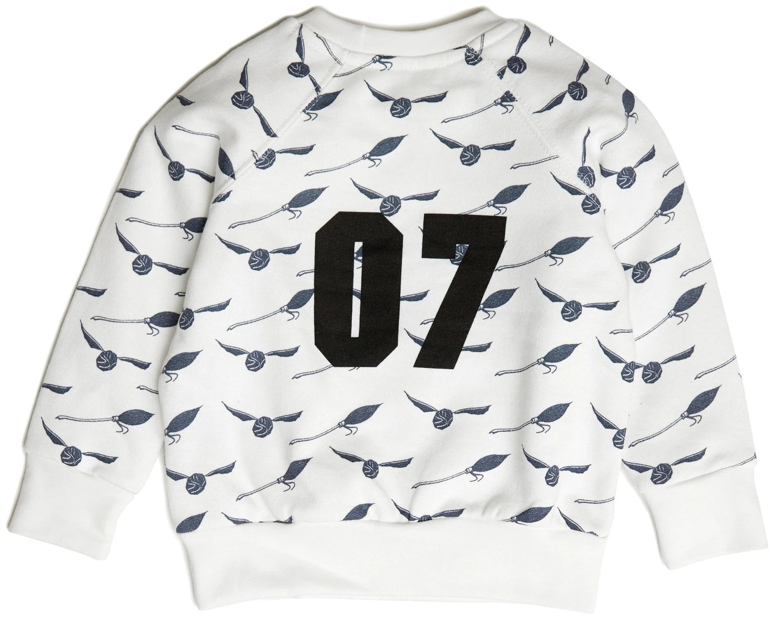The Hedwig sweatshirt is designed using pale stone coloured Organic cotton in a soft loopback sweatshirting finish. It features an iconic all-over Hedwig print, orange stitch detailing and a supersized premium quantity embroidered Hedwig badge on the front. Matching joggers and onesie also available.