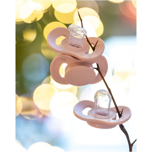 This beautiful Lullaby Planet silicone pacifier has a symmetrical nipple which is suitable for children who rotate the pacifier in their mouth. The symmetrical nipple ensures that the pacifier fits correctly and feels the same no matter how it is rotated.