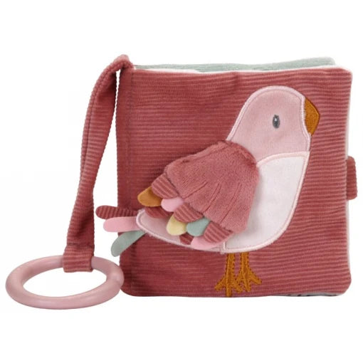 Get ready for a new adventure with Olivia the bird. This touch and play stroller booklet is set to become a favorite in your little one’s toy stash. Rendered in pretty pastel hues, it makes for a whole lot of entertainment. Detailed with fun labels, crinkle textures, and a beautiful flower with a bell inside, the activity toy will stimulate your child’s senses. It also has a mirror for self-discovery. Attach the loop to the stroller for entertainment on-the-go