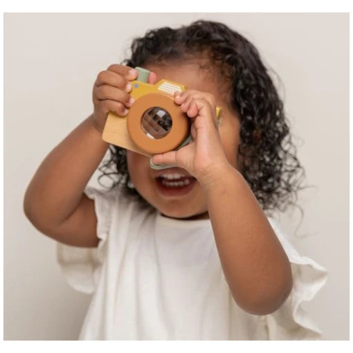 Cheer up! Take your camera and take some pictures of your parents, your pet or your favorite toy. With this wooden camera you can turn any view into a colorful scene. You can rotate the lens with the kaleidoscope and the world will look colorful and fun. Click the button and step into the role of a professional photographer. You are sure to make everyone smile.