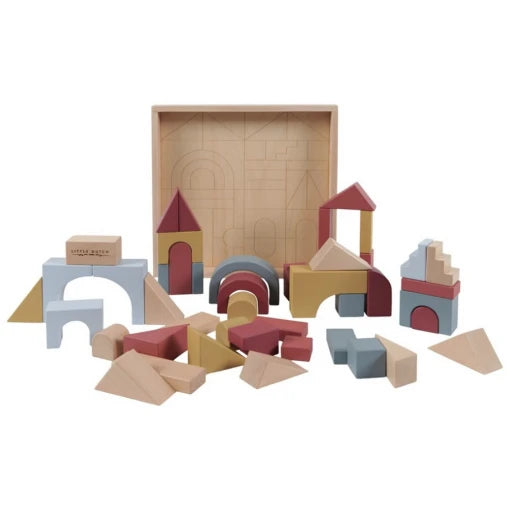 Create the most wonderful figures and buildings with these nostalgic, yet modern building blocks from Little Dutch’s Pure & Nature Collection. The blocks have different geometrical shapes and are stored in their own open wooden box. With these coloured blocks, children can use their imagination to invent whatever comes to their mind. This promotes hand-eye coordination and fine motor skills. The set encourages children’s play development and guarantees hours of building fun.