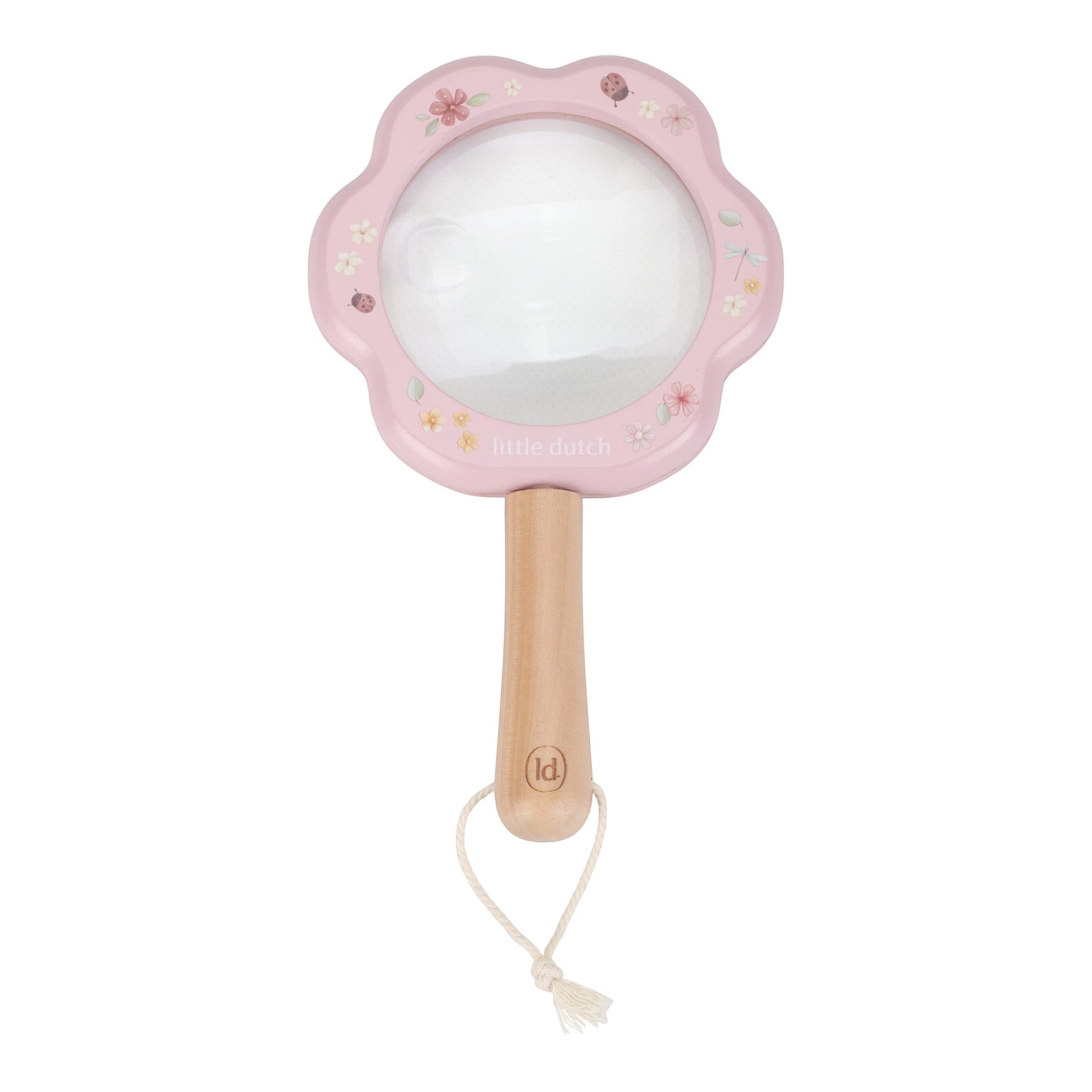 The durable wooden frame and easy-to-use handle ensure a comfortable grip, while the beautiful colors and patterns inspired by the Forest Friends collection add a playful feel. The flashlight has a built-in very small lens for even more detailed observation.