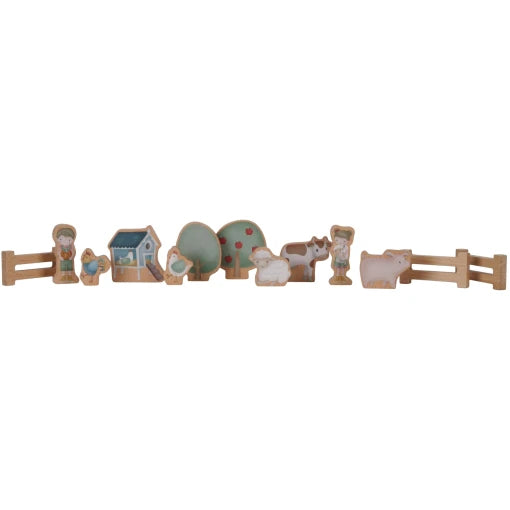 Honk honk! Go on endless adventures with this wooden train track from the Little Farm collection. Hop on the train and head to the farm with all the animals. What a cozy trip! Each wooden figure is illustrated in detail on both sides.