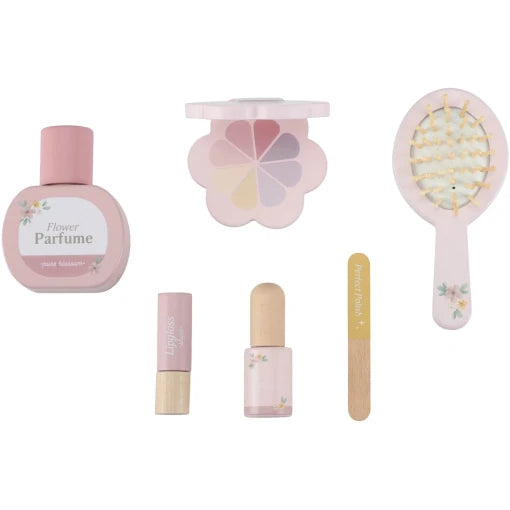 This lovely wooden boudoir features a rotating mirror and includes six cute beauty accessories, including a hairbrush, lipstick and perfume.