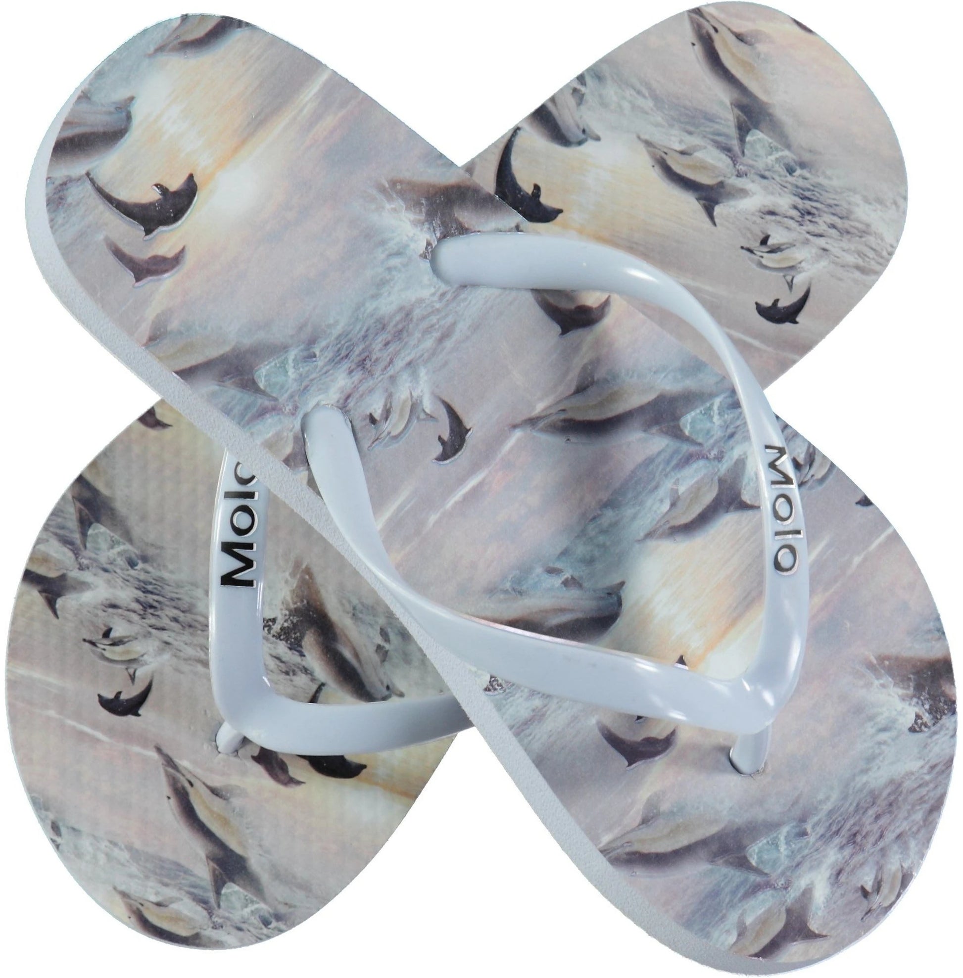 Beach sandals with a cool digital dolphin print and a single strap between the toes. The sandals are perfect for a trip to the beach or to wear with shorts for a relaxed, summer look.